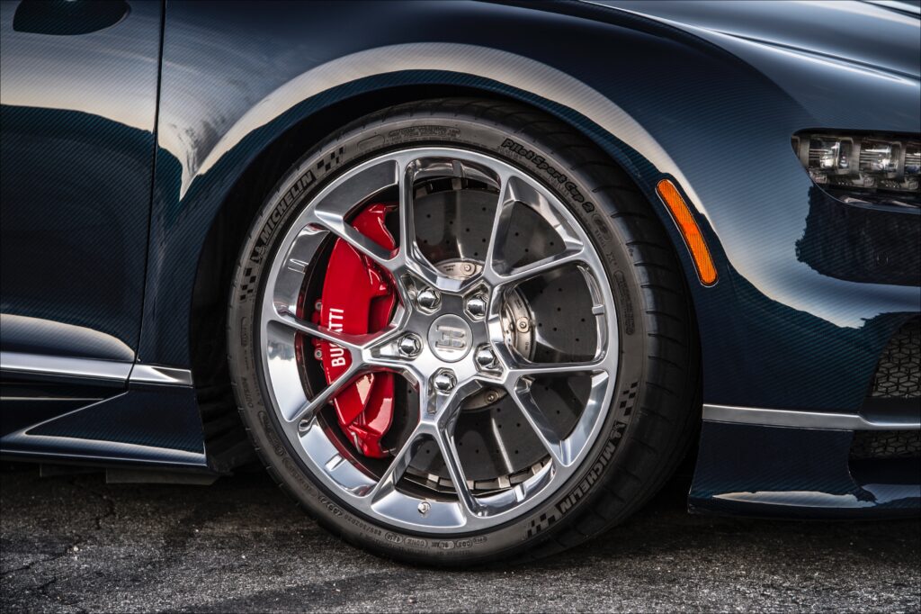 Details down to the tire valve cap are engineered with excruciating thoroughness to conquer the physics of speed. As example, the paper-thin tire valve cap weighs 2.5 grams in your hand, but at top speed “weighs” about 16 pounds due to 3000 G’s applied to it. The spinning tire itself is experiencing 3800 G’s at top speed. As Wallace says, “It’s a very large ask to make a car go 300 miles per hour. Land speed record cars don’t use rubber tires. They ride on solid metal discs. Michelin has done a fantastic amount of work.”