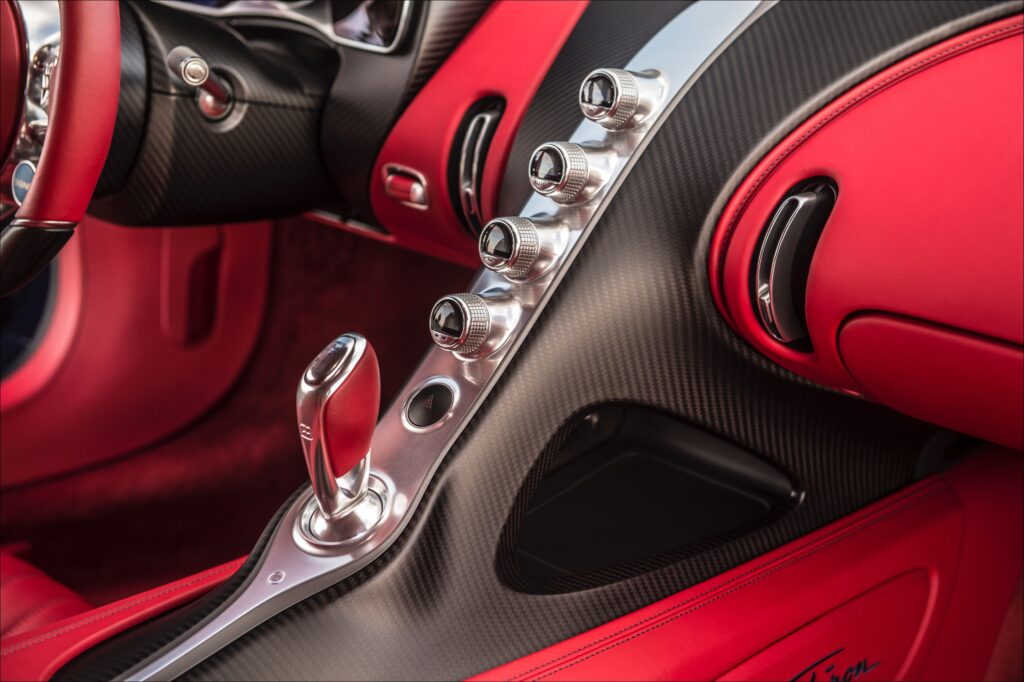 To manage the engine’s 1180 lb-ft of torque, Bugatti turned to its English gearbox partner, Ricardo, to reinvent Veyron’s dual-clutch 7-speed gearbox. Chiron’s is the smoothest dual-clutch I’ve experienced, or at least seemed so with a pint of adrenalin coursing my veins. Chiron’s W16 war song is akin to a 1960s big-block Can-Am racecar mixed with a 27-liter World War Two aviation engine, with a measure of grace and good manners. Deep, affirmative, profound, yet nothing raw or harsh. Sound and speed are delivered in an eerily refined way thanks to the all-wheel drive that forbids smoking tires.